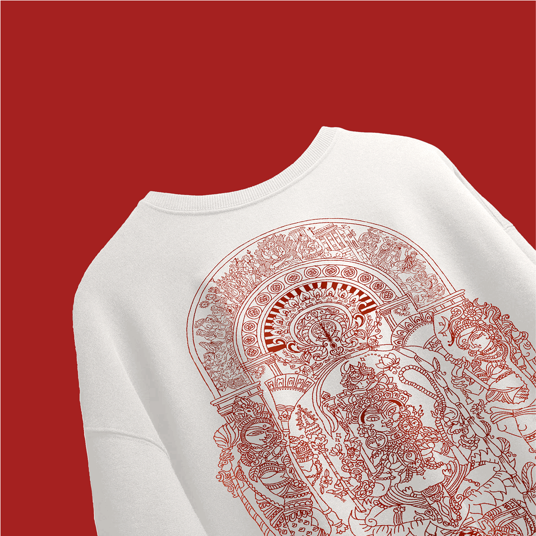 This tee is an ode to Dussehra; hours of hand-drawn intricacy inspired by India’s indigenous art. Each line carries the story of Maa Durga, the slayer of Mahishasura, the roar of Shakti itself. Not fashion, but a talisman of विजय (victory). The eternal triumph of good over evil.